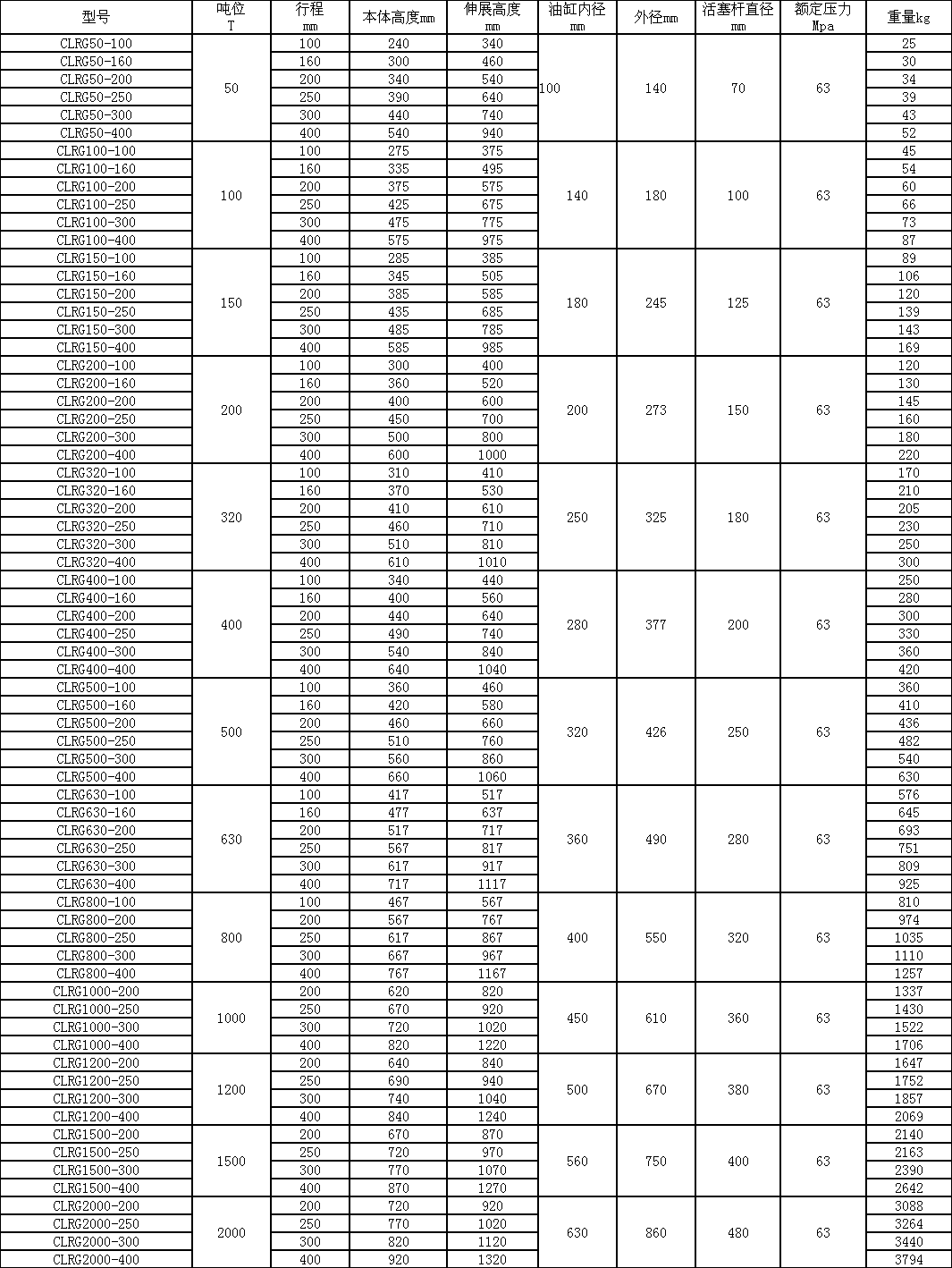 | CLRG-系列雙作用大噸位千斤頂 詳細參數(shù) |